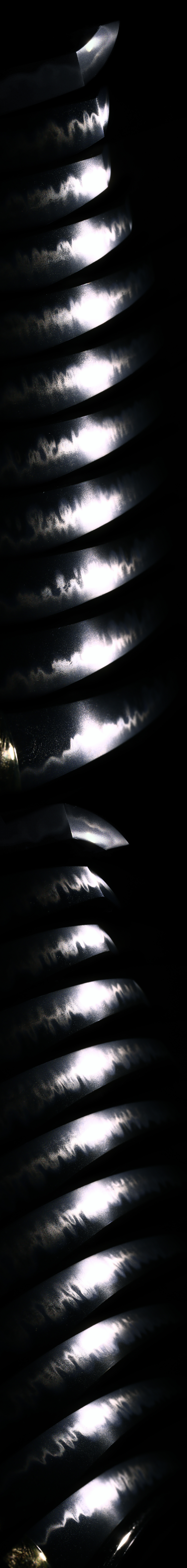 Jigane: The ko-itame hada is well-forged and results in a fine steel texture.