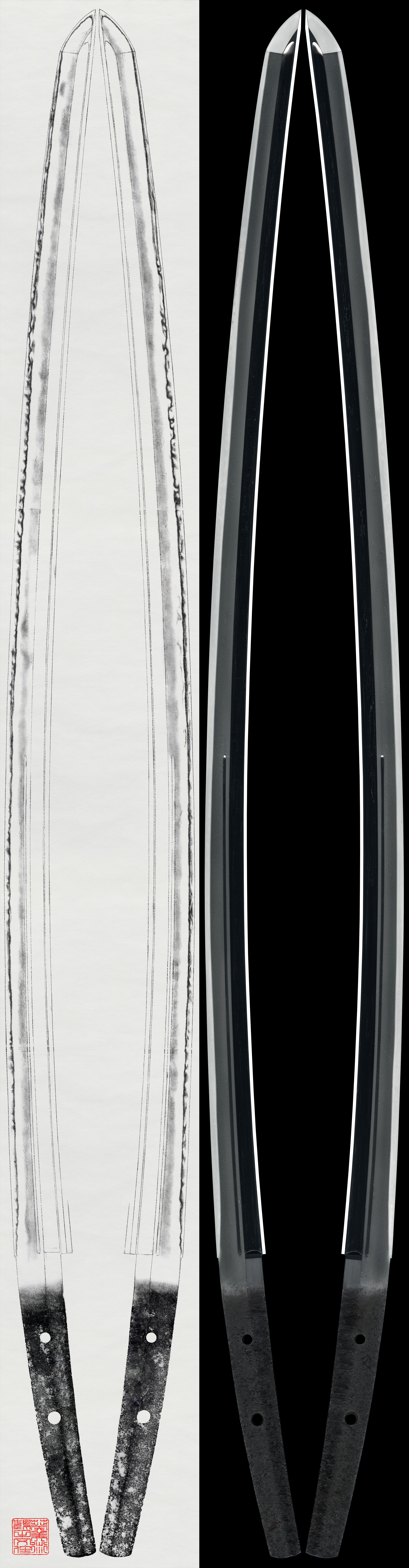 Shape: A long blade with a wide body and deep koshi-zori (waist curvature), showing a well-balanced form.