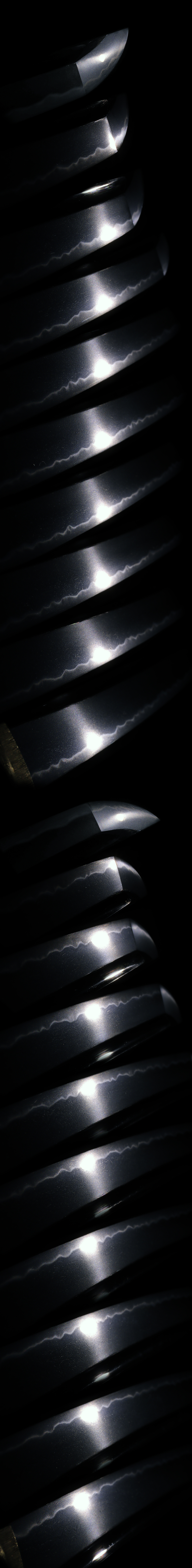 Hamon: Ko-nie deki Notare and Gunome. Boshi is Midare-komi with Kinsuji and ends in Yakizume style.