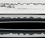 Hamon: Nie-deki gunome midare with double and triple temper lines appearing within the pattern.