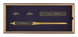 Ordering number: F25418 Fittings Set (Fuchikashira, Kozuka, Tsuba, Kojiri, Koiguchi): Fuchikashira: Mumei (Uns […]
