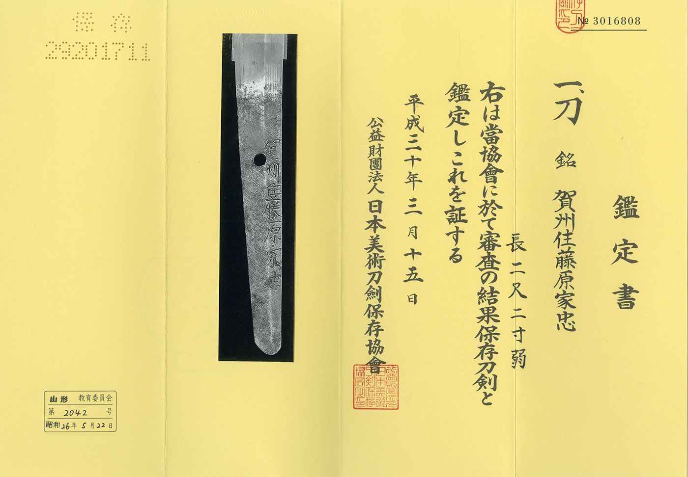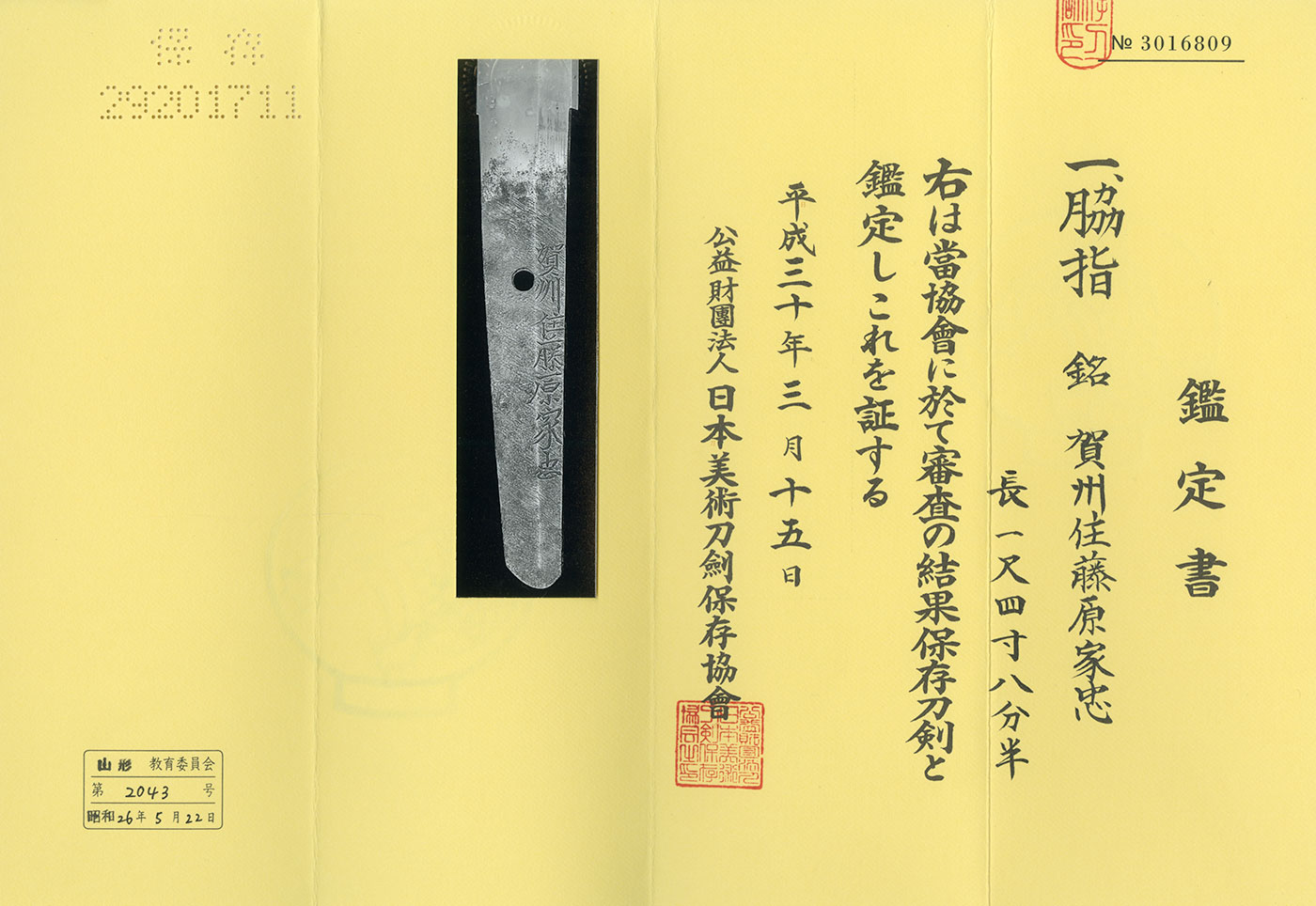 Inscription: Gashu Ju Fujiwara Ietada 賀州住藤原家忠