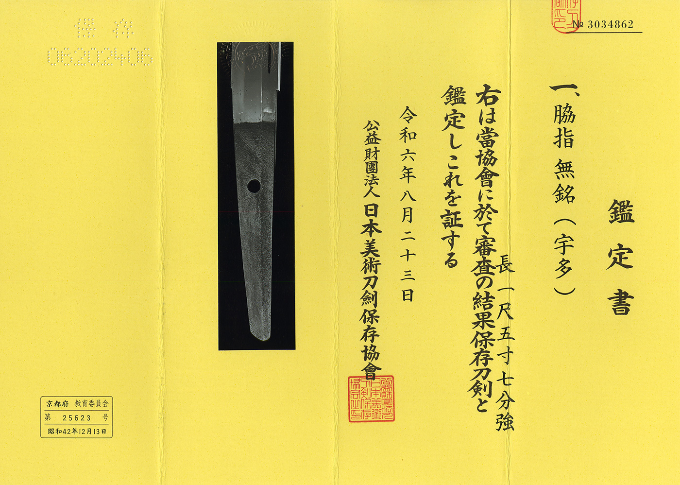 Katana: Mumei(Unsigned)(Ko-Uda)(NBTHK Hozon Token)
