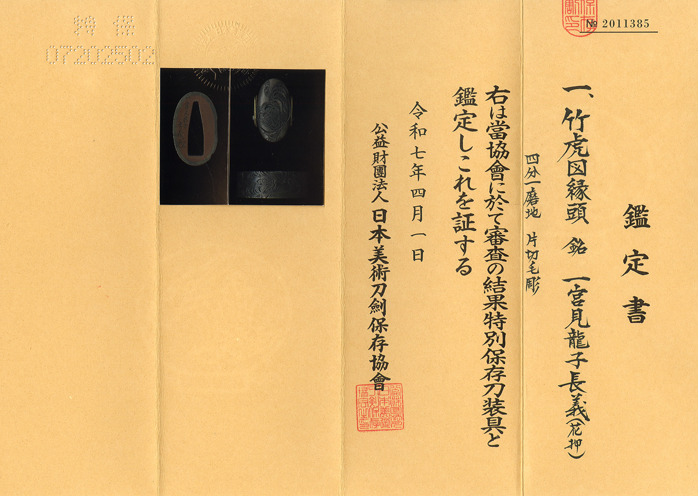 NBTHK Tokubetsu Hozon Certificate