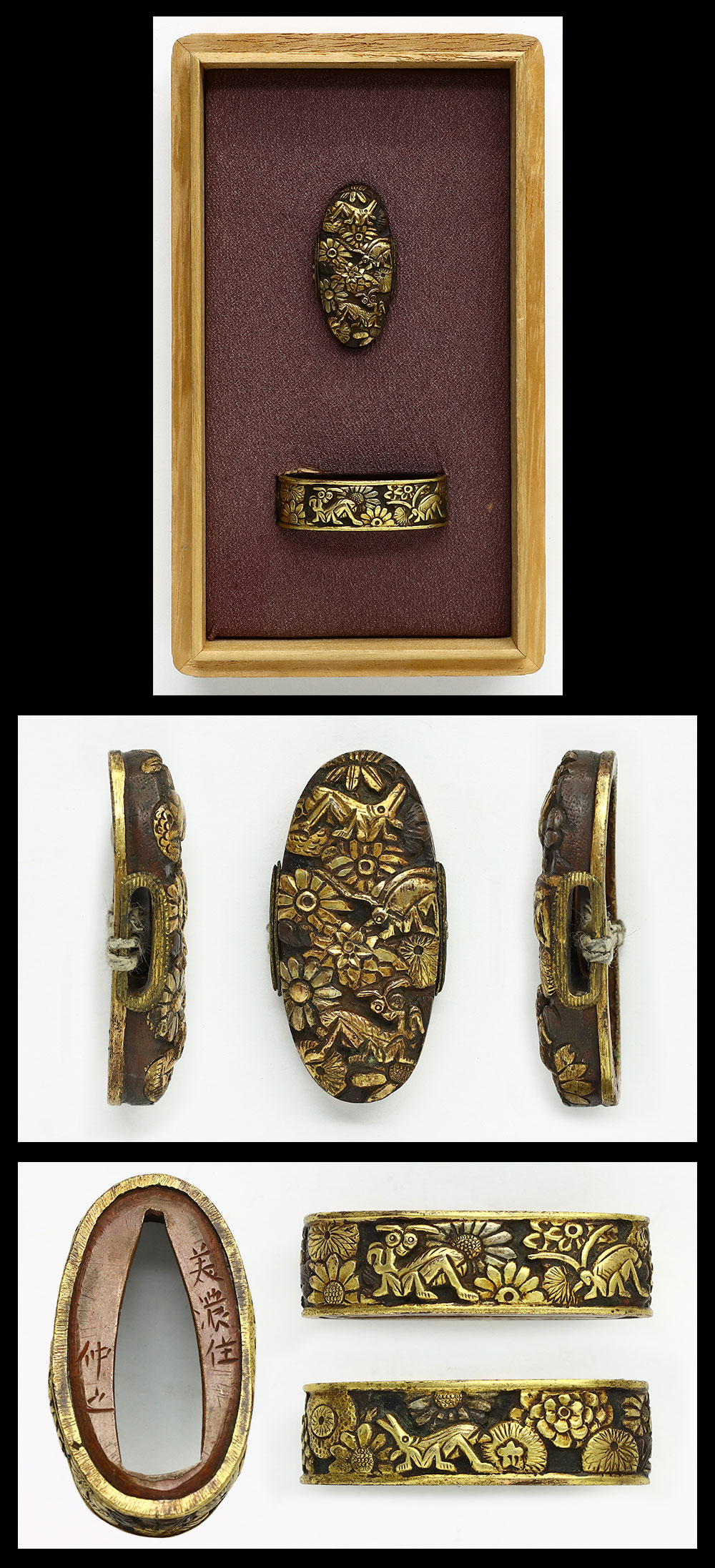 Special Feature: Shakudo Nanako plate. Autumn insects and plants are engraved with gold color.