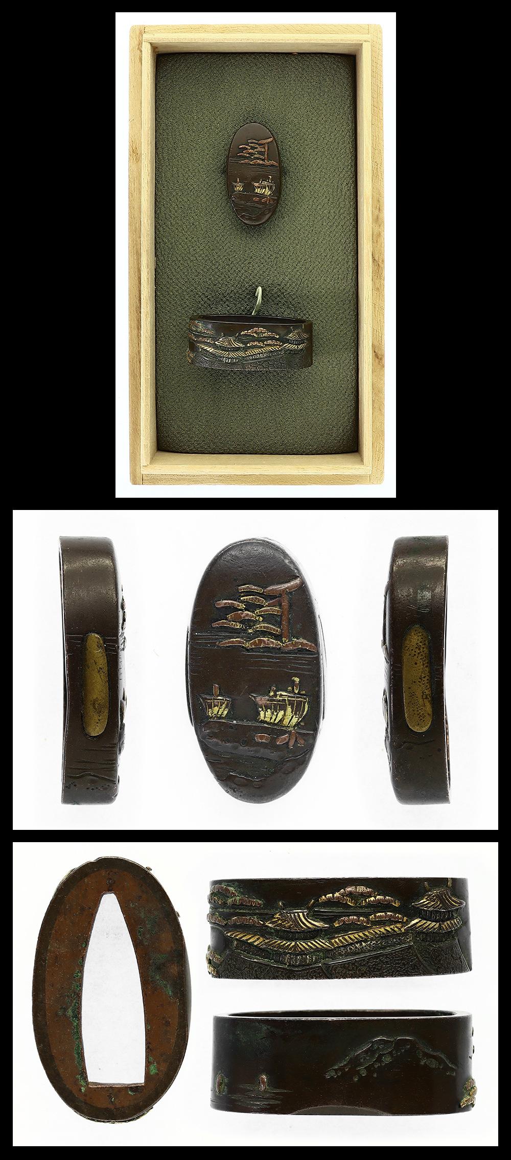 Special Feature: Yamagane or Shibuichi plate. Scenery is engraved with colors.