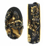 Feature: Shakudō nanako ground with a family crest design, embellished with gold detailing.