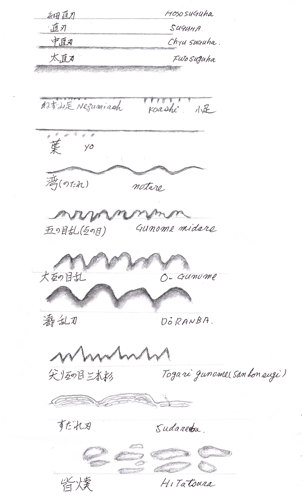 ①刃中の働き Hachu no Hataraki (Various patterns in the Ha)