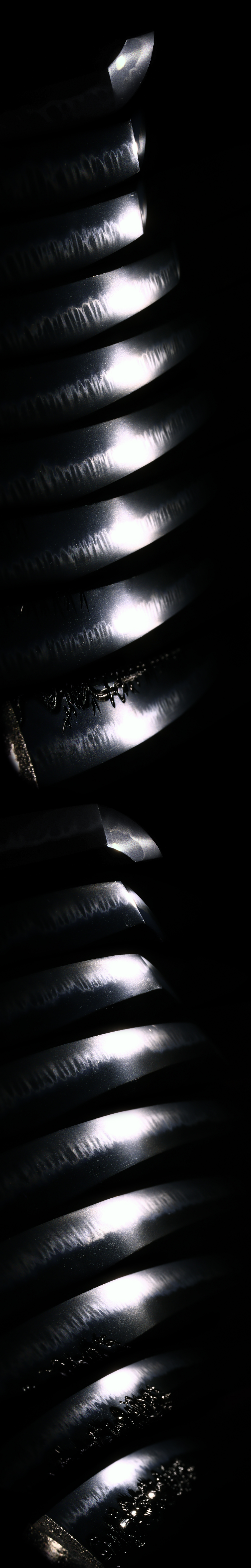 Jigane: Fine ko-itame hada is tightly forged, resulting in excellent steel.