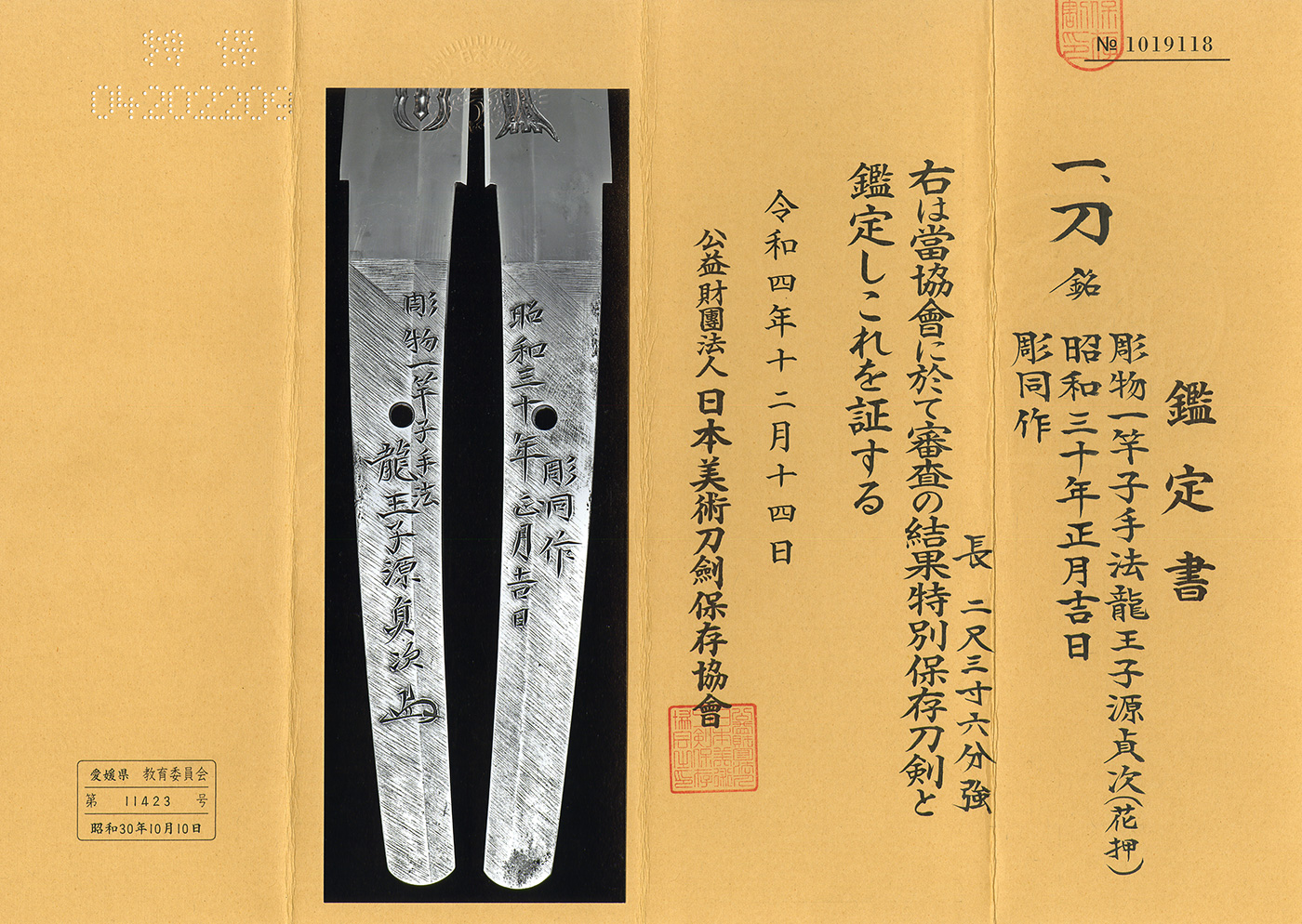 Features: As one of the first designated Living National Treasures, Sadatsugu was highly regarded as a leading master of sword carvings.