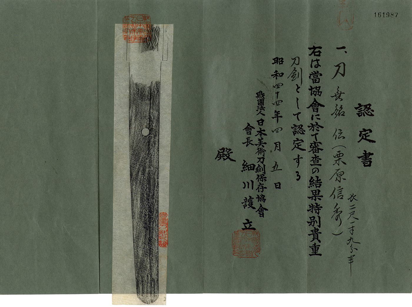Previously, the Sword Museum issued an appraisal as Mumei Den Kurihara Nobuhide.