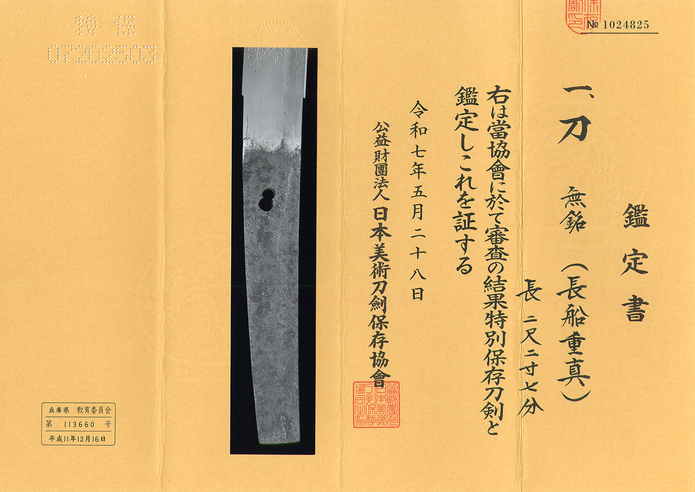 Features: Osafune Shigezane was a swordsmith active from the late Kamakura period to the early Nanbokucho period, said to have been a younger brother or disciple of Motoshige, and his workmanship is similar. This blade has a wide mihaba and an excellent overall shape. The period of this work is considered to be around the late Kamakura period.