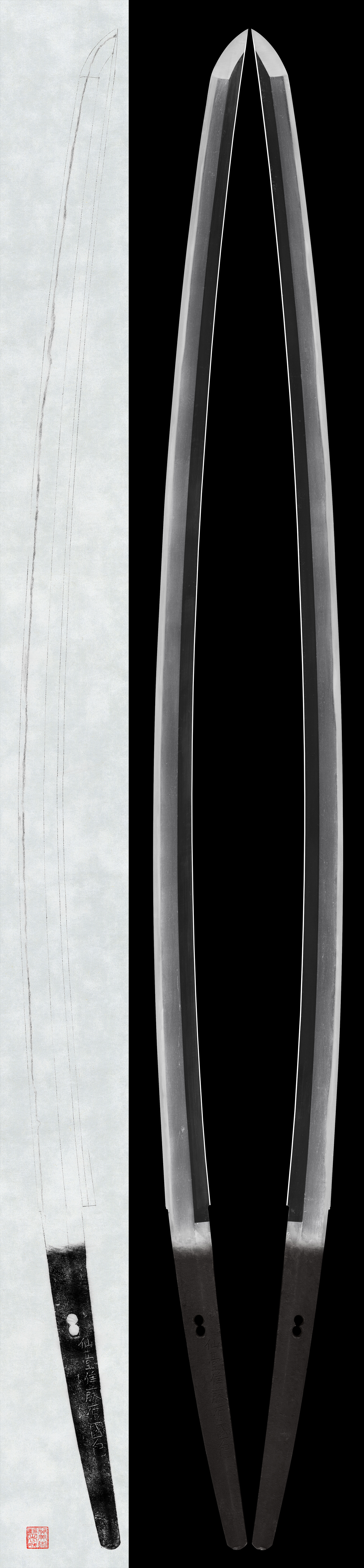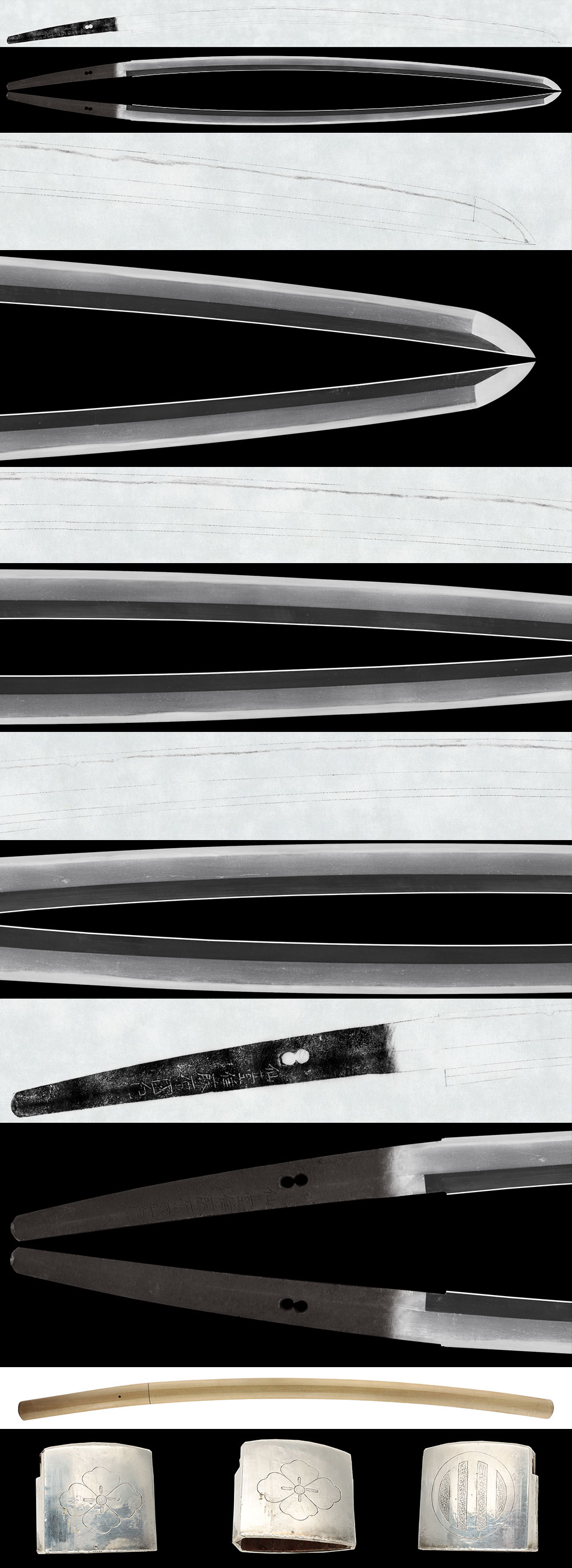 Shape: The blade has a standard mihaba with deep curvature and a well-proportioned shape. The kissaki is slightly extended.