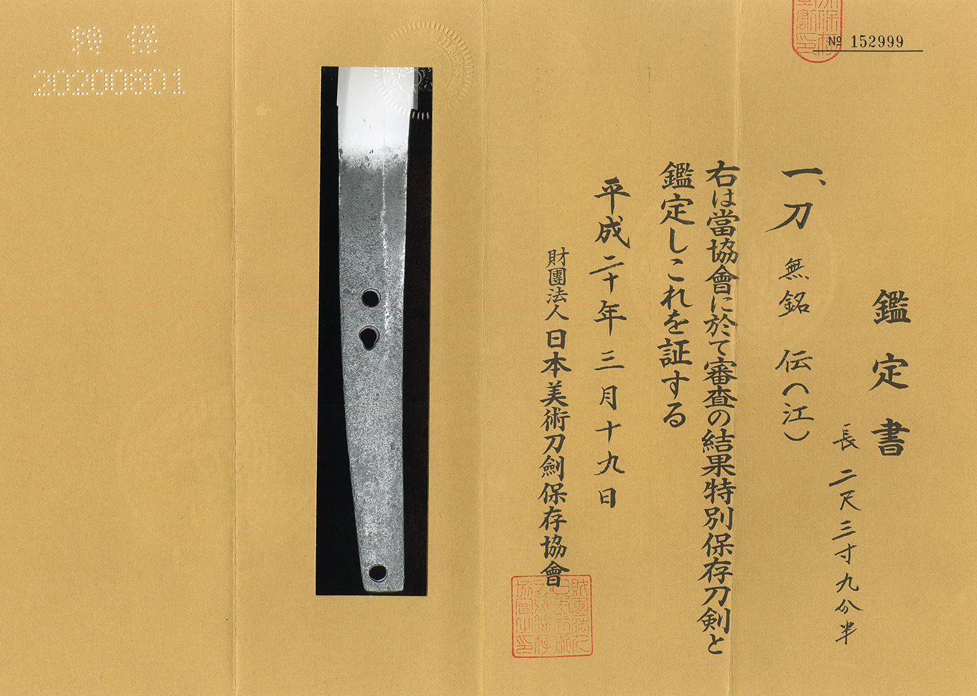 Katana:Mumei (attributed to Den Hosho).(NBTHK Tokubetsu Hozon Token)
