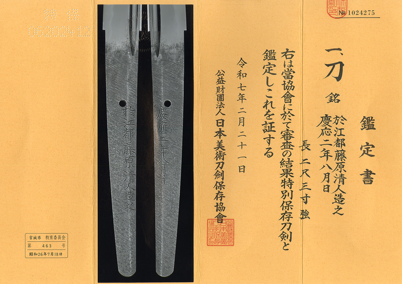 We highly recommend preserving this piece together with its koshirae.