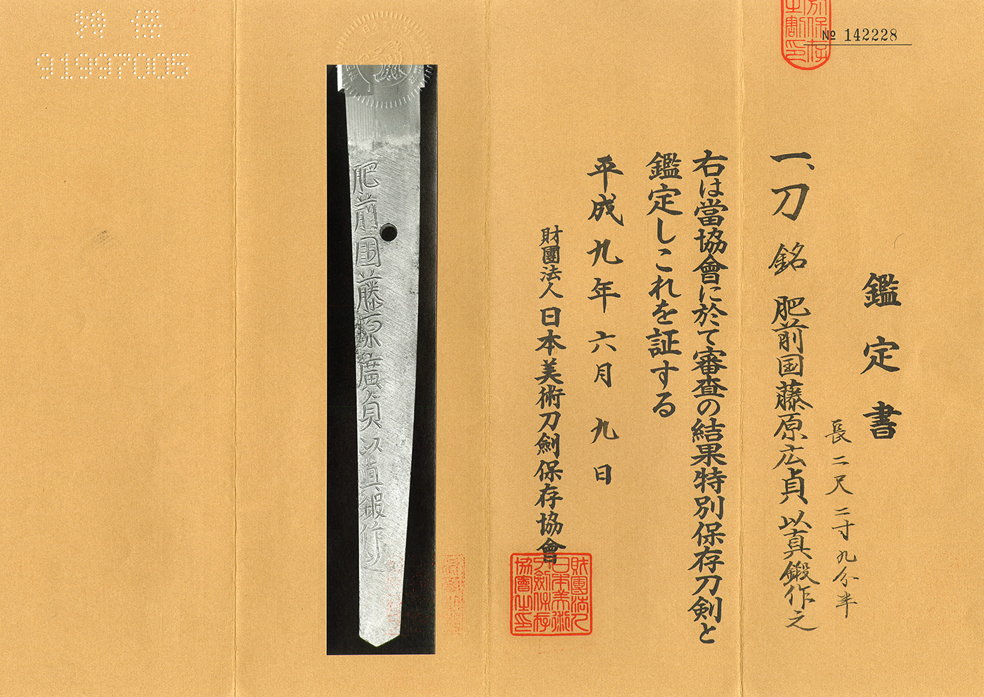 Katana: Hizen Koku Fujiwara Hirosada motte shin-tan saku kore(NBTHK Tokubetsu Hozon Token)