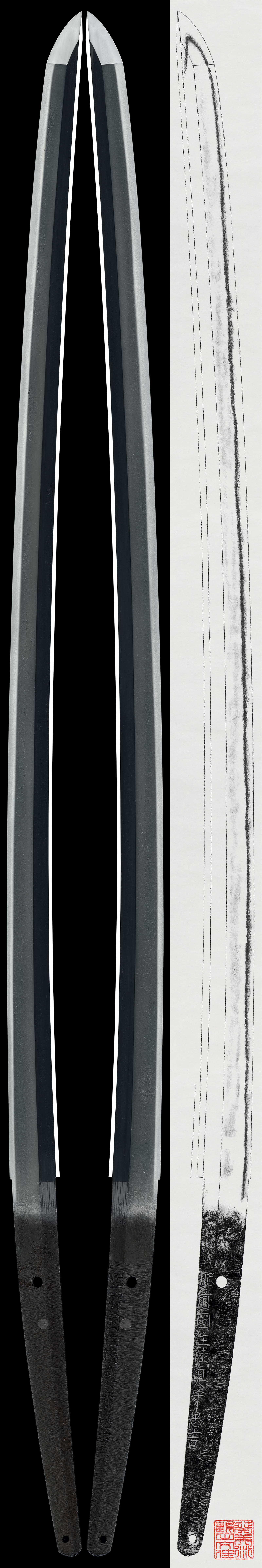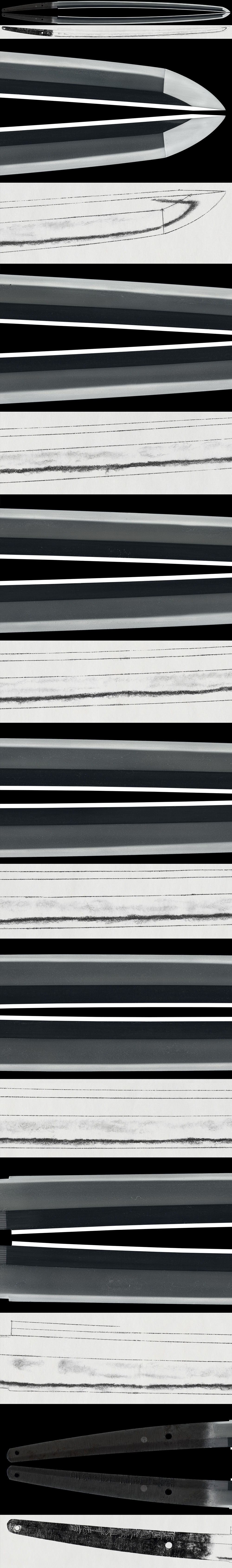 Shape: A blade with standard width and thickness, small curveture and sharp Kissaki. There is about3 cm of Machiokuri.