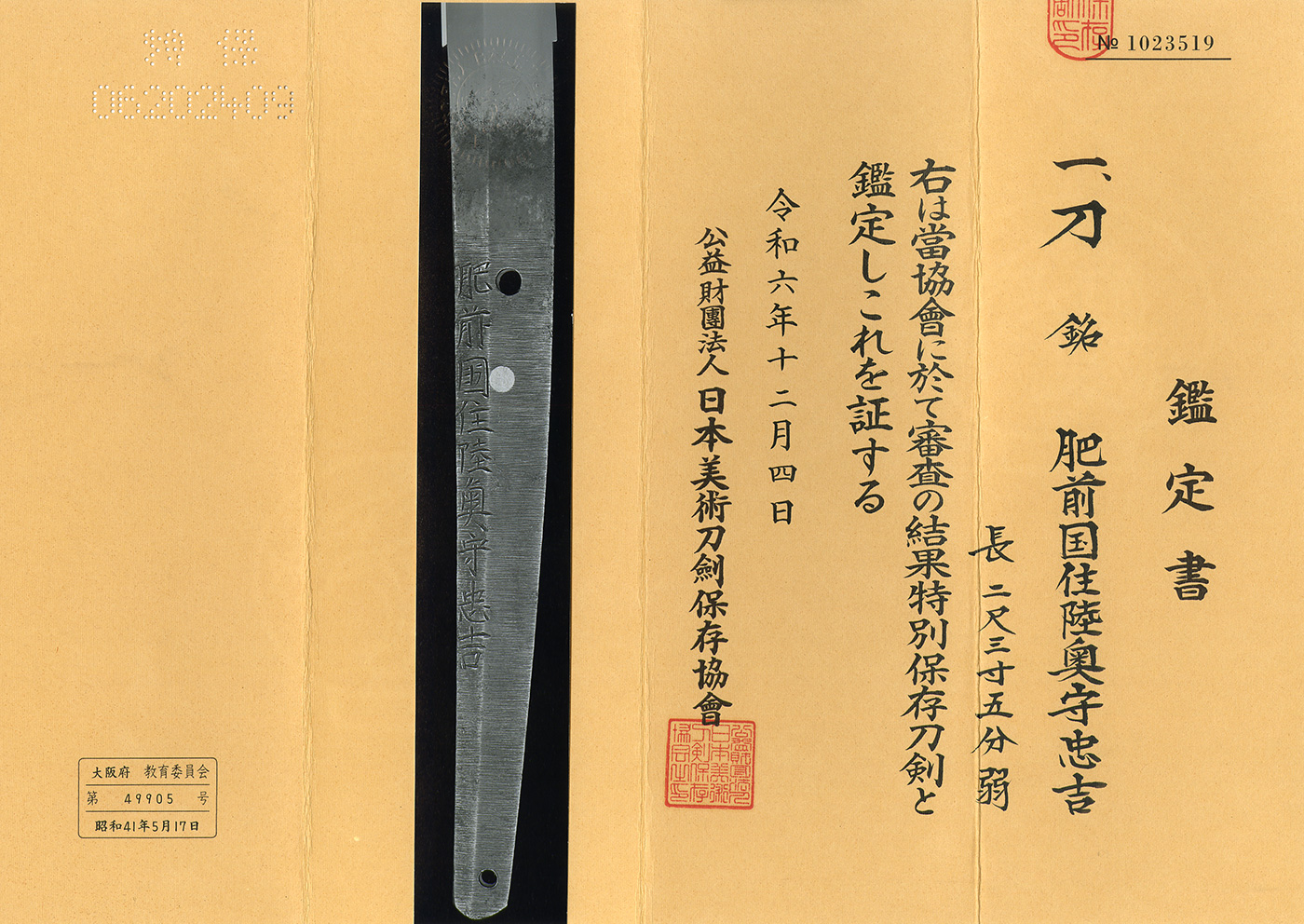 Signature: Hizen Kuni Ju Mutsu no Kami Tadayoshi 肥前国住陸奥守忠吉