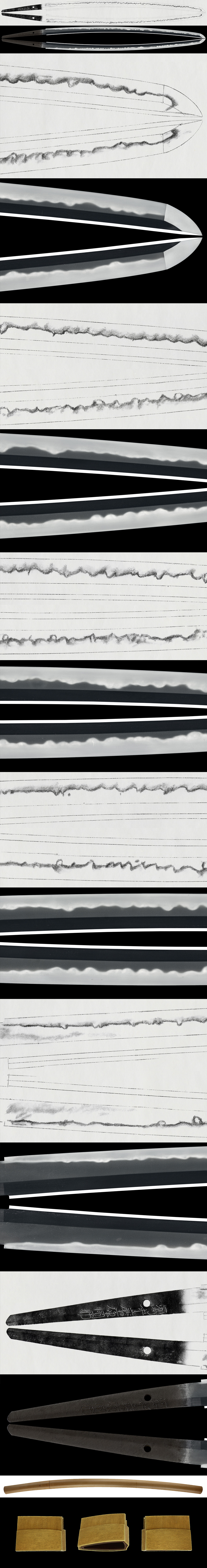 Kwachi Kami Fujiwara Kunisuke was born in Ise and became an apprentice of Horikawa Kunihiro. After Kunihiro's death, he moved to Osaka with The 1st generatino of Kunisada, who was an apprentice of Kunihiro as well. Their style suggests that their real teacher was Echigo Kami Kunitomo, who was a apperentice of Kunihiro and their senior colleague. The jigane of this piece is delicate and beautiful, and the Hamon is gentle.