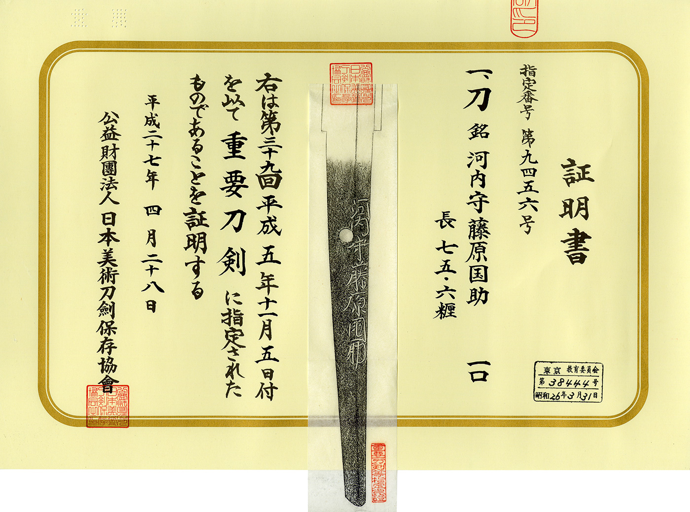 Katana:Kawachi Kami Kunisuke (Second Generation, Nakakawachi) (NBTHK Tokubetsu Hozon Token)