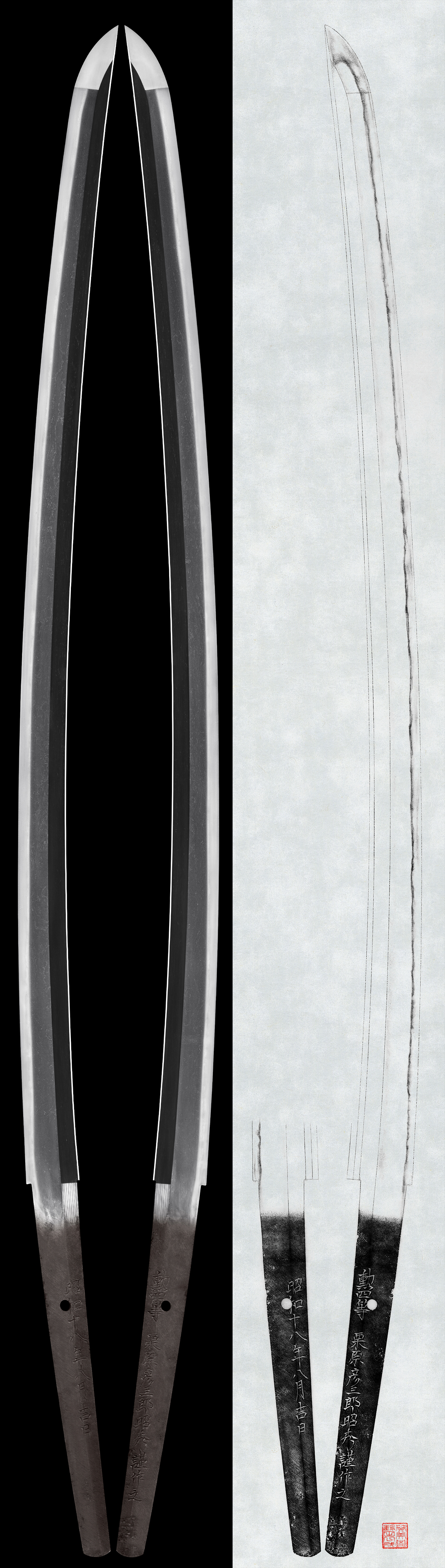 Shape : The blades wide and thick with rather deep sori and longer Kissaki.