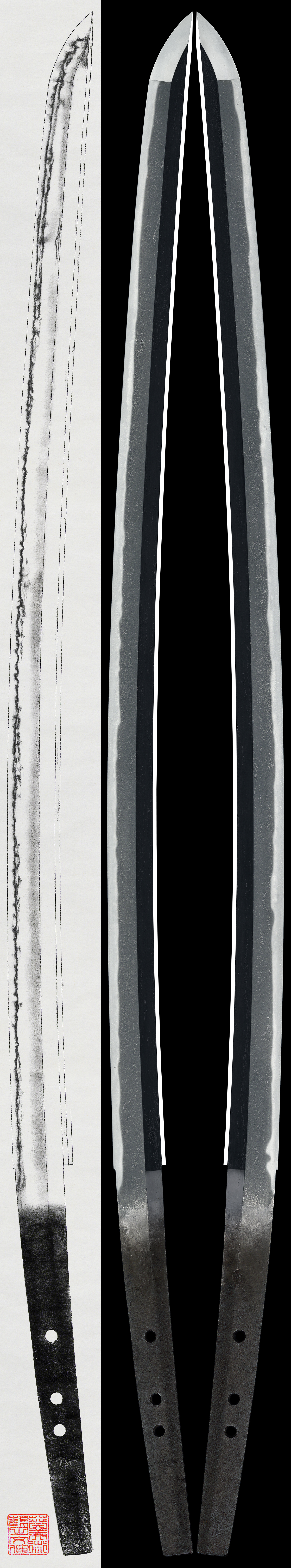 Shape: A well-proportioned piece with standard width and thickness, a moderate curvature, and an extended kissaki.