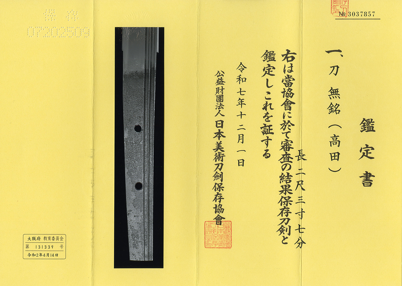 Katana: Mumei(Unsigned) (Takada school) (NBTHK Hozon Token)