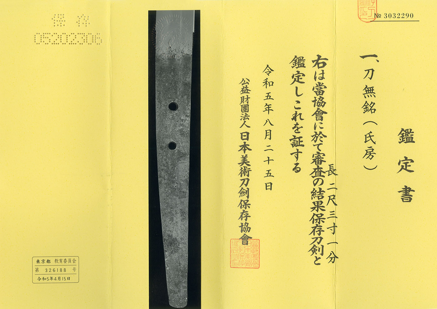 Katana:Mumei (Unsigned), attributed to Chikakage.(The 41st NBTHK Juyo Token)