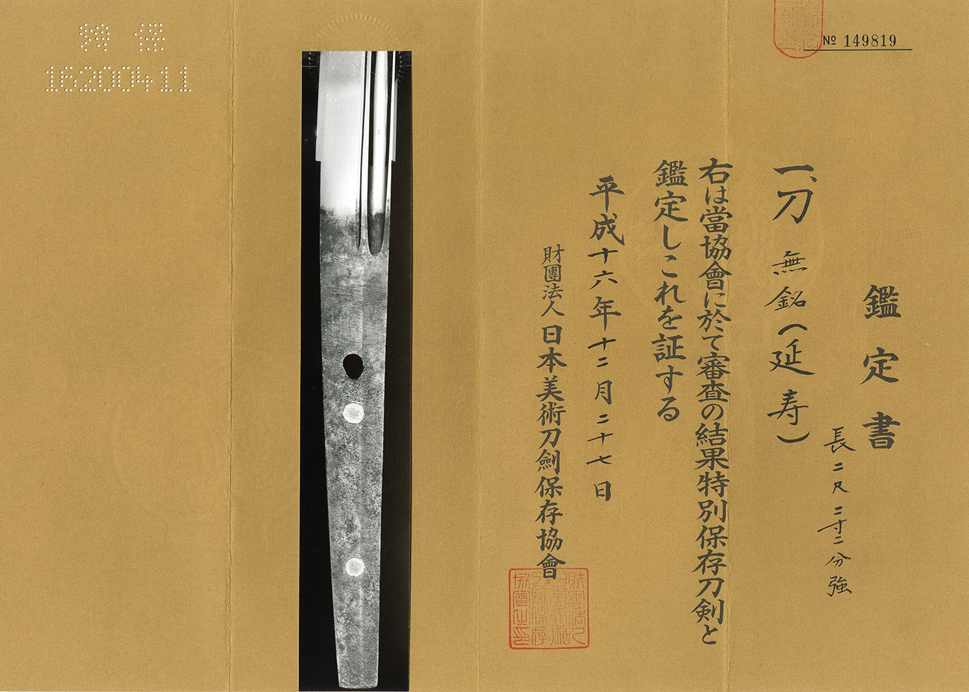 Katana: Mumei (Enju) (NBTHK Tokubetsu Hozon Token)
