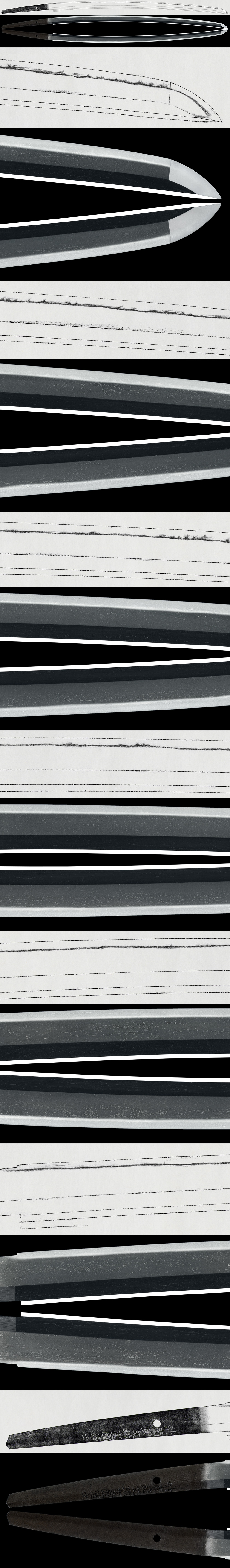 The blade displays a workmanship characterized by suguha, which may be described as the traditional and distinctive style of the Shigekuni school.