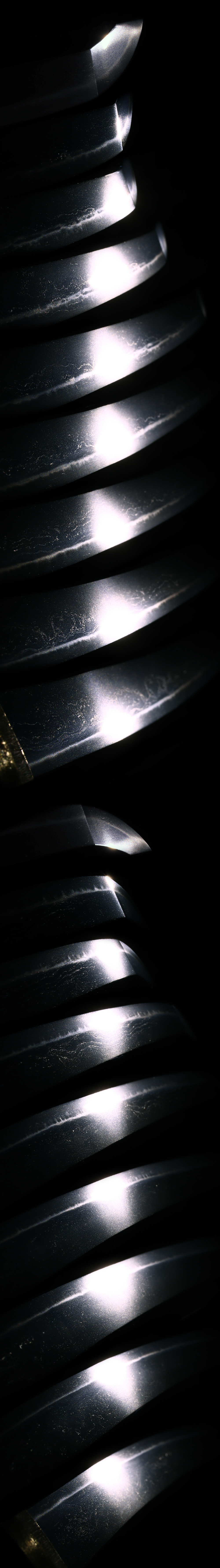 Hamon: Ko-nie deki Suguha with Ko-ashi, doubled hamon.