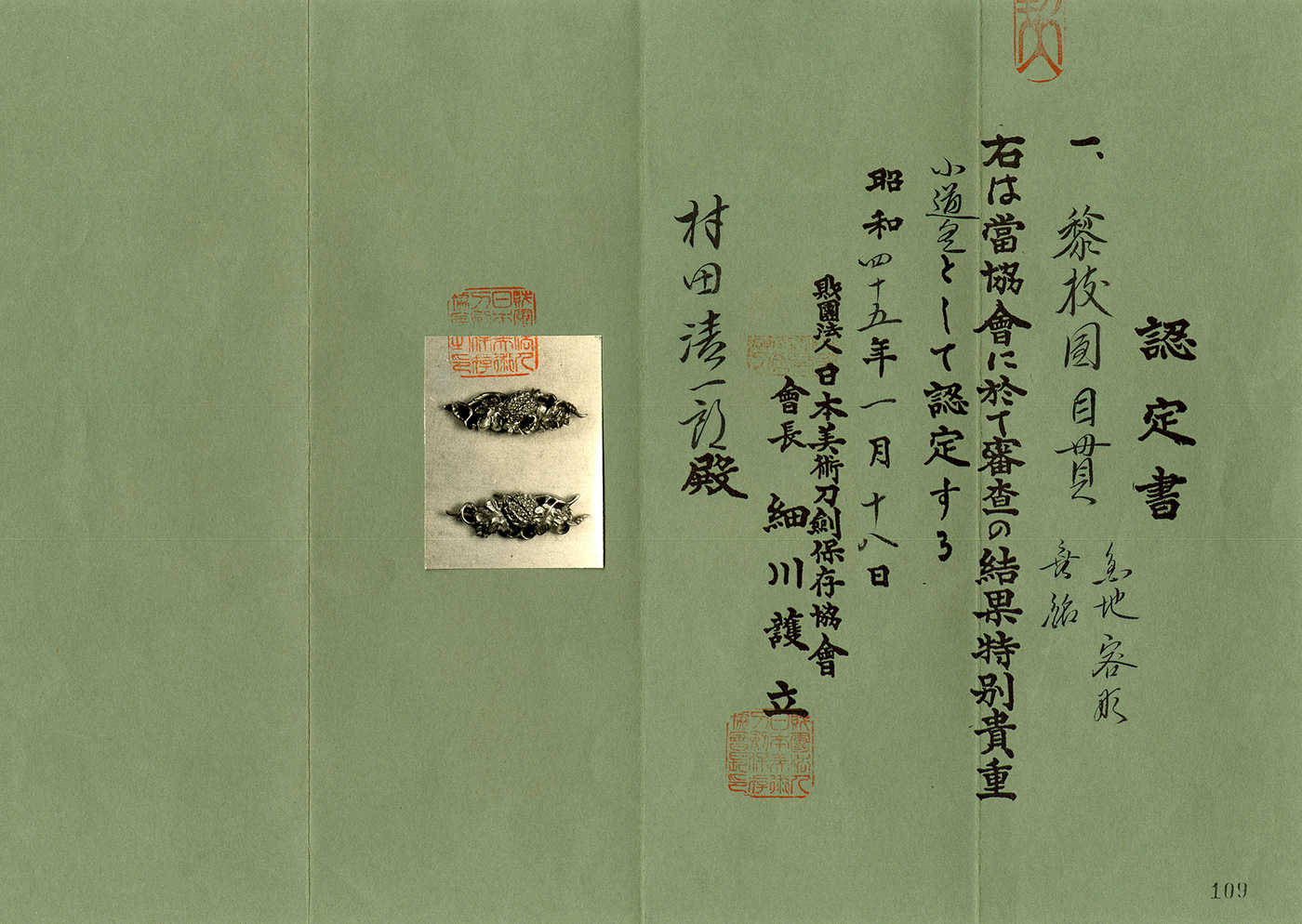 NBTHK Tokubetsu Hozon Certificate