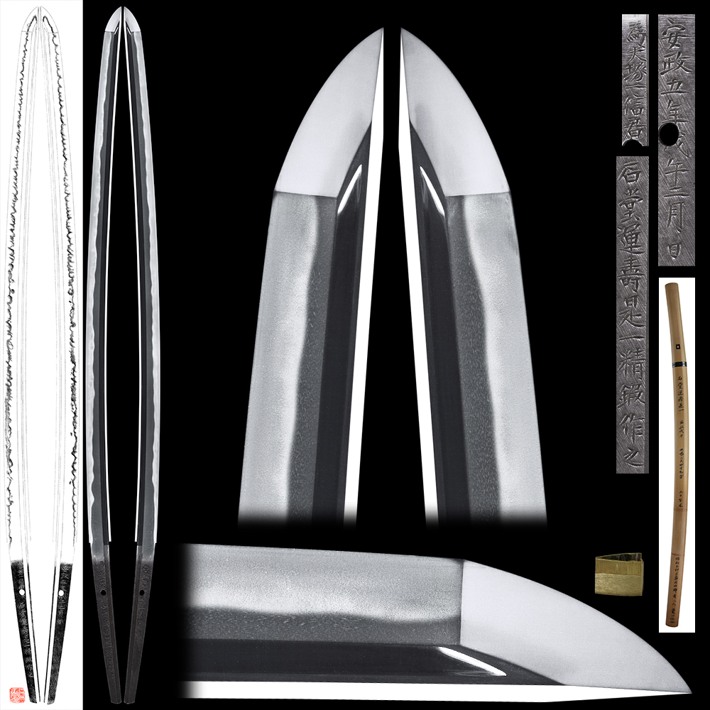 Katana in Shirasaya with Koshirae (NBTHK Tokubetsu Hozon Token) Signature: Ishido Fujiwara Korekazu Seitan Kore