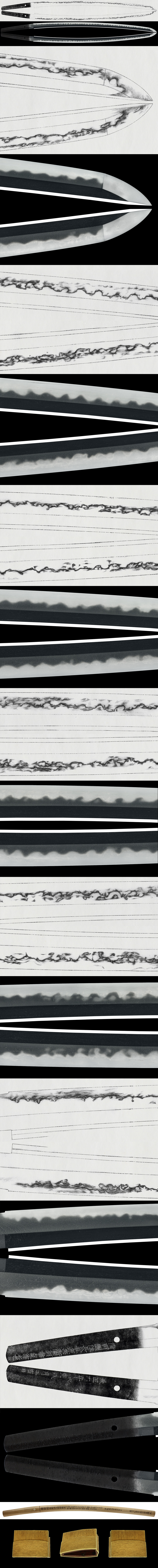 Hamon: Nie-deki, with choji-midare, becoming more vigorous toward the upper area, with an intensely midare boshi.