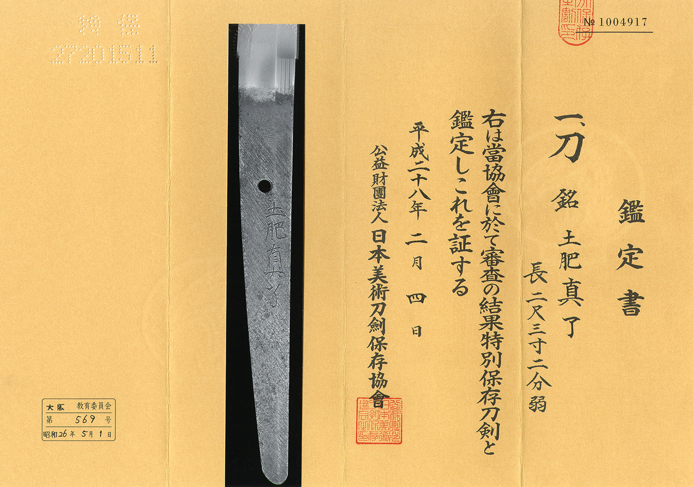 Katana: Yamato Kami Hidekuni (February 1870)(NBTHK Tokubetsu Hozon Token)