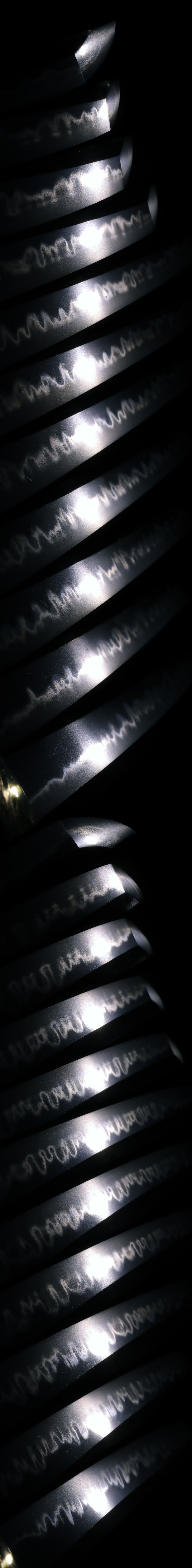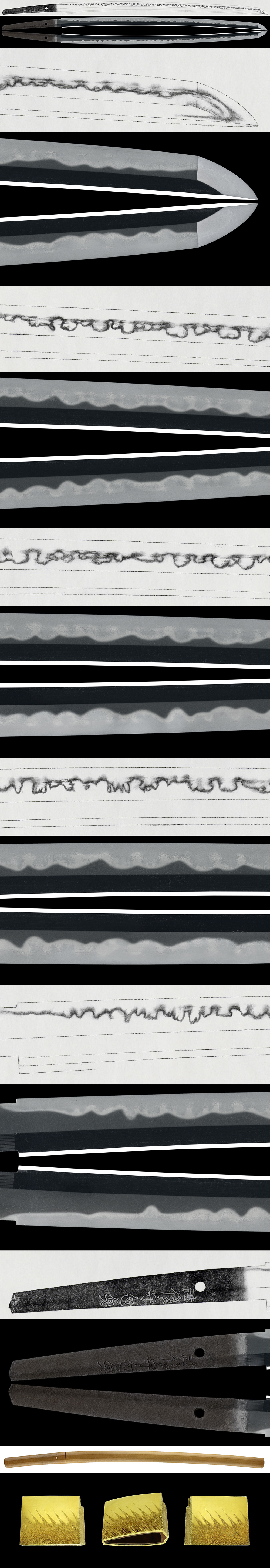 Hamon: From the Hamahi is Suguha and then Gunomemidare with soft nioiuchi. Boshi turns back roundly with deep nioikuchi.
