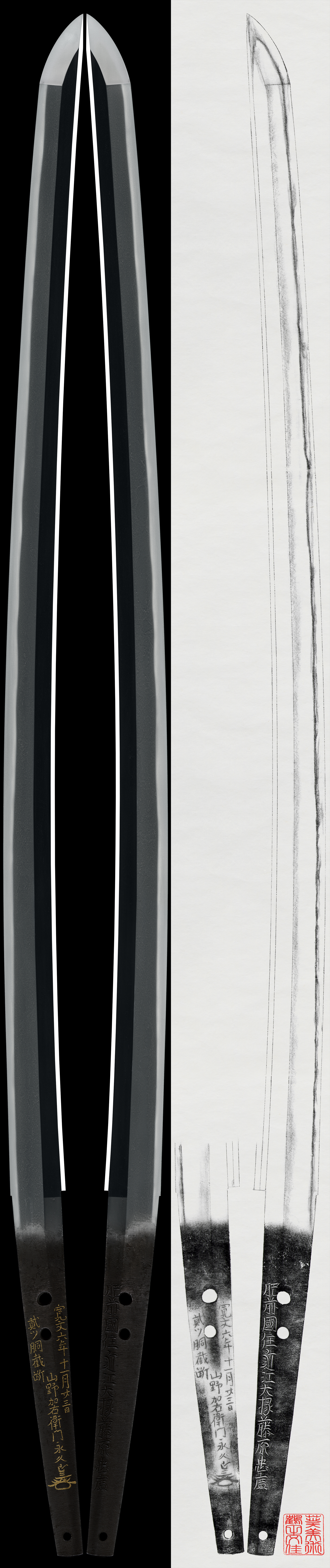 (金象嵌)寛文六年十一月廿三日二ツ胴截斷山野加右衛門永久(花押)