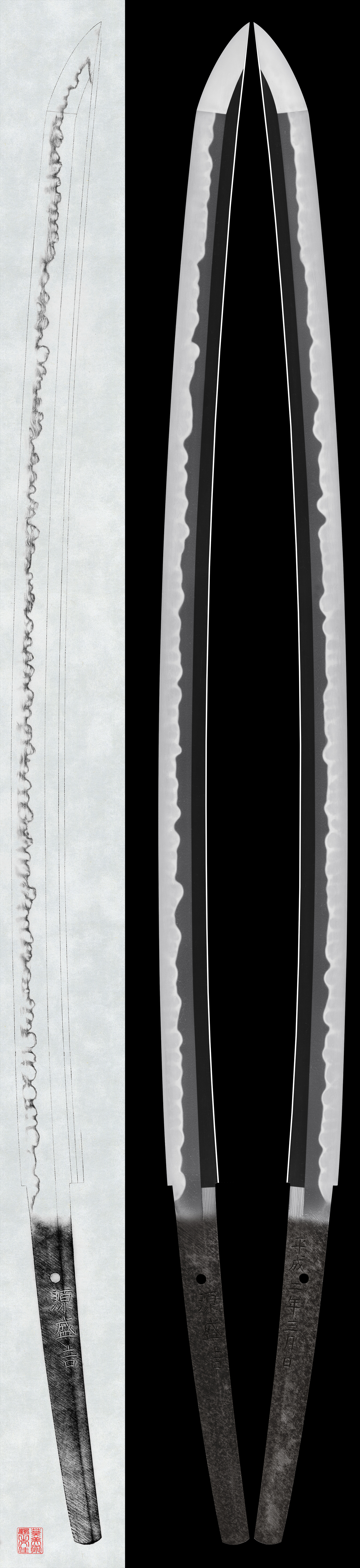 Shape: Wide mihaba and thick kasane with an extended kissaki, creating a powerful and magnificent work.