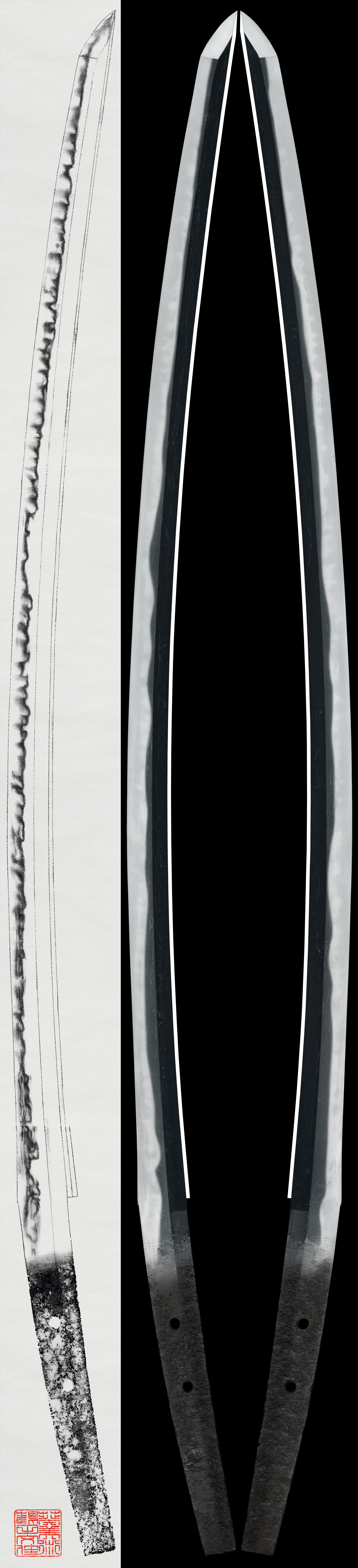 Shape:This sword has a deep curvature, visible utsuri, and a wide mihaba.