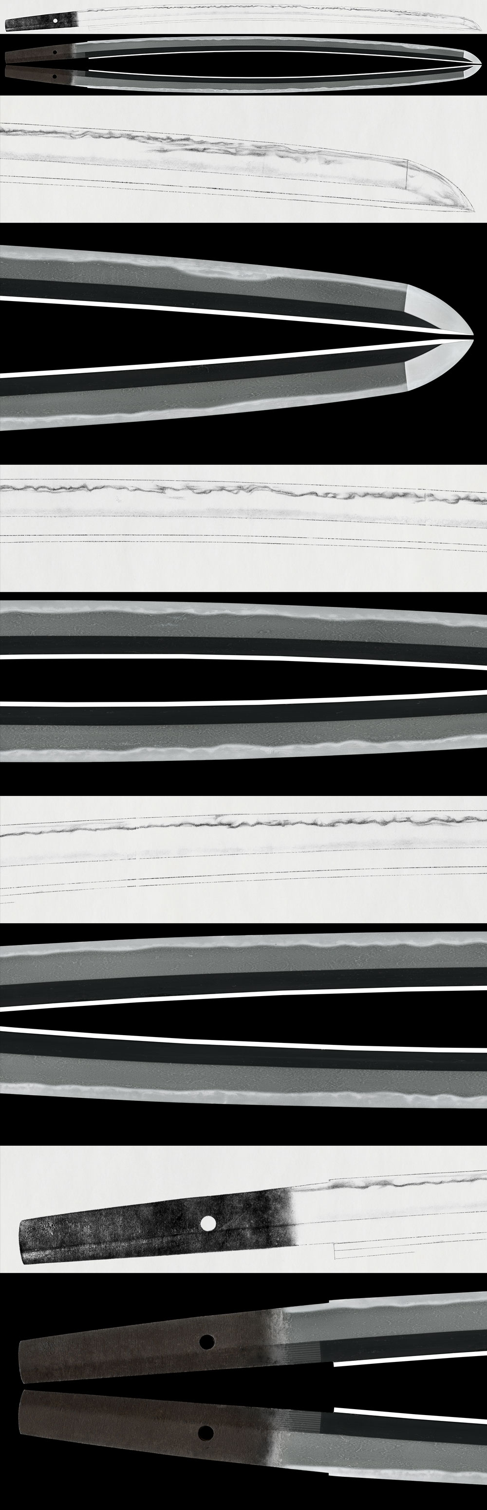 Hamon: Nie-based small gunome-midare mixed with choji-midare, with active ashi.