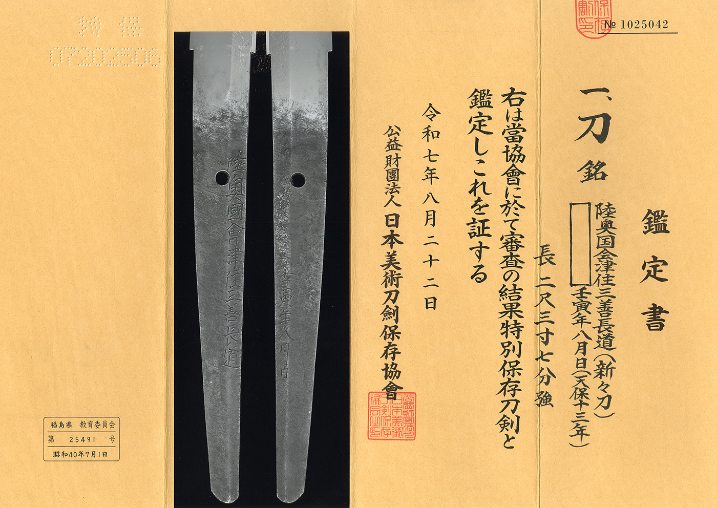 Katana:Mutsu Aizu ju Miyoshi Nagamichi (8th generation). (NBTHK Tokubetsu Hozon Token)