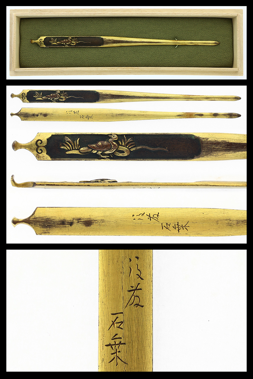 Features: On the Shakudo nanakoji base, a bird is engraved with gold.