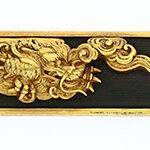 Features: On a brass ground, figures thought to represent Zhuge Liang and Zhao Yun are carved with inlays.