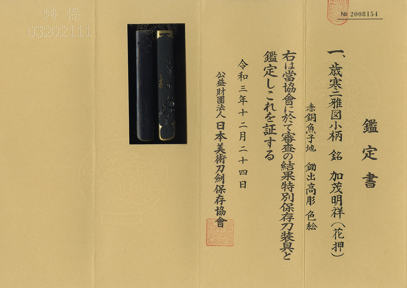 NBTHK Tokubetsu Hozon Certificate