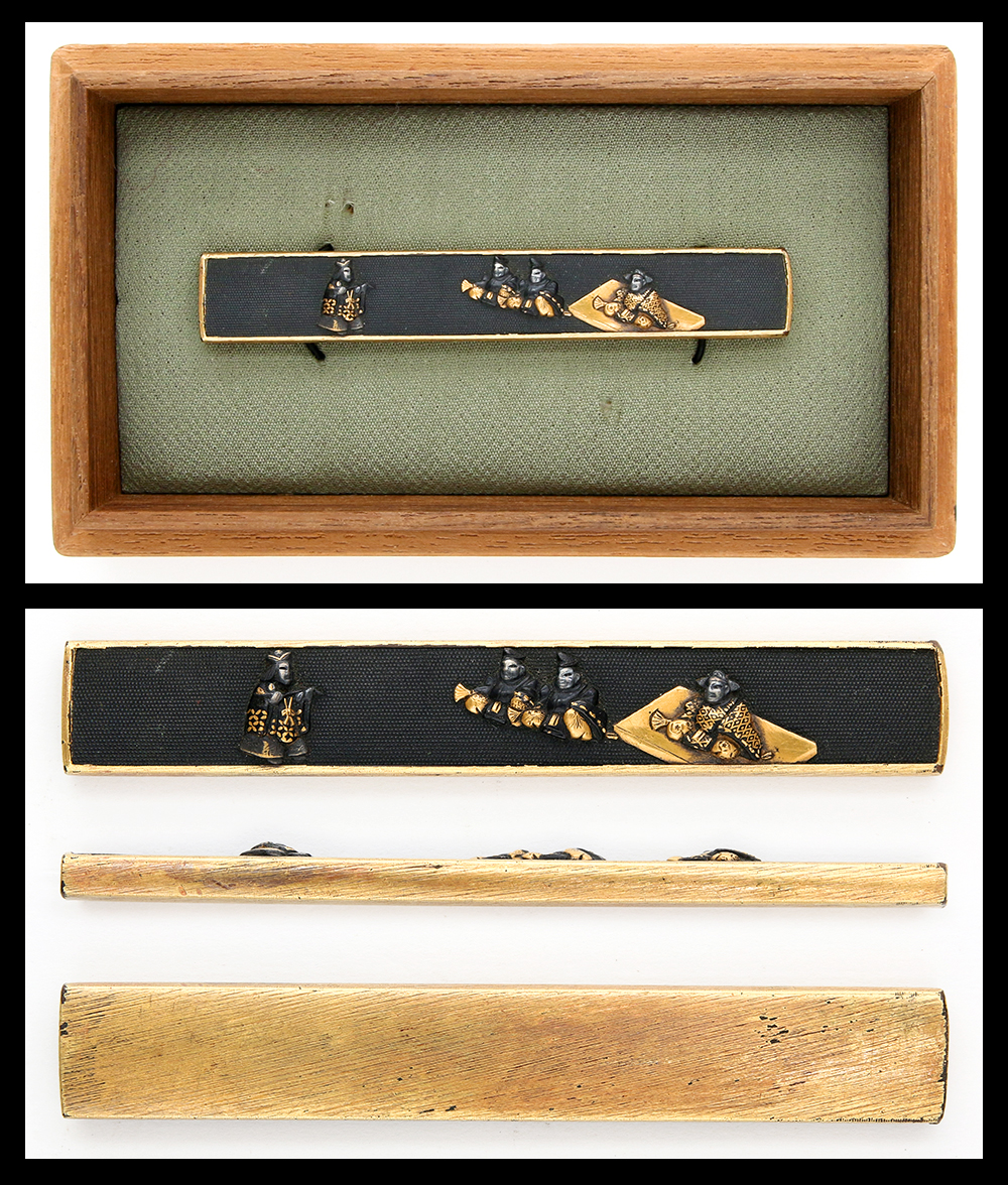Special feature: On the Shakudo nanako plate, 4 men are engraved with gold and silver color.