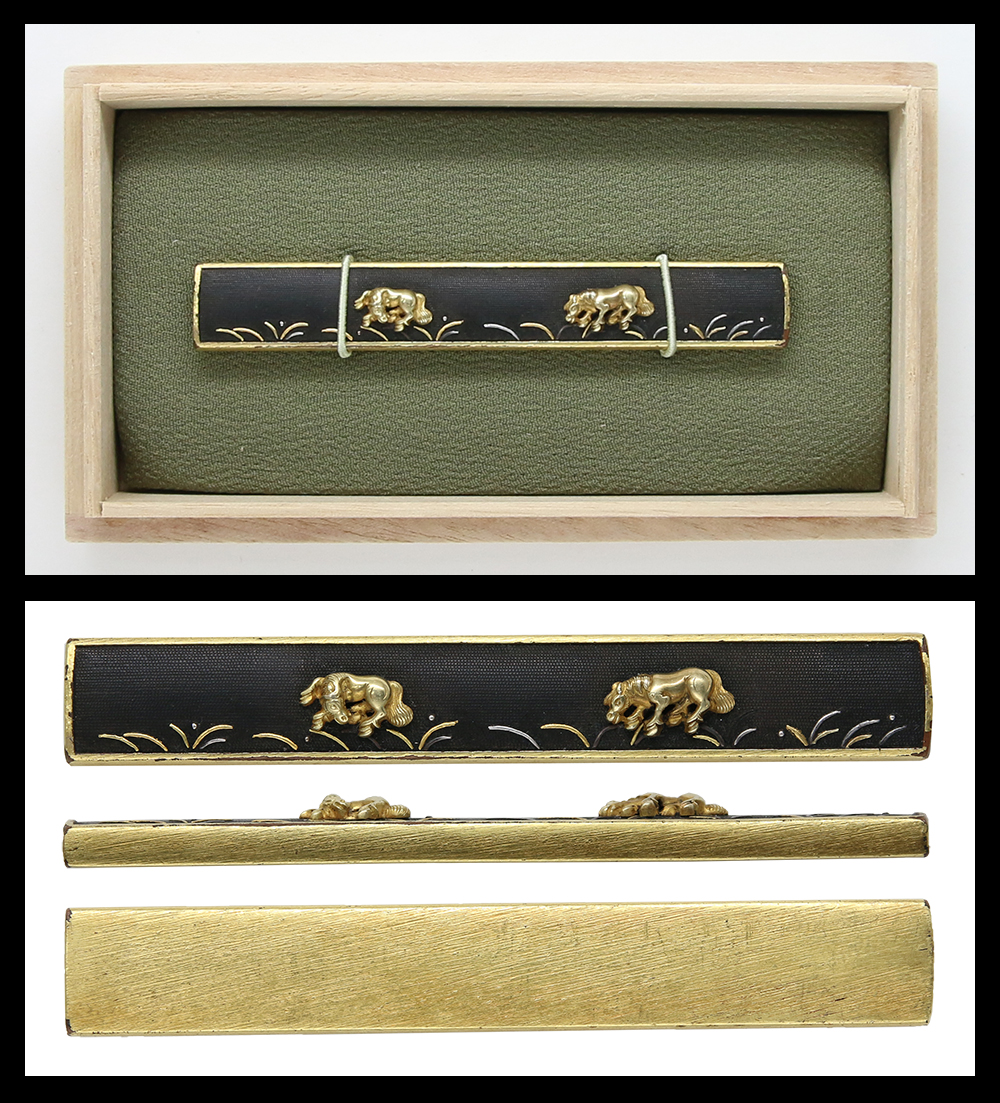 Special feature : On shakudo nanakoji plate, horses are engraved and inlayed with gold.