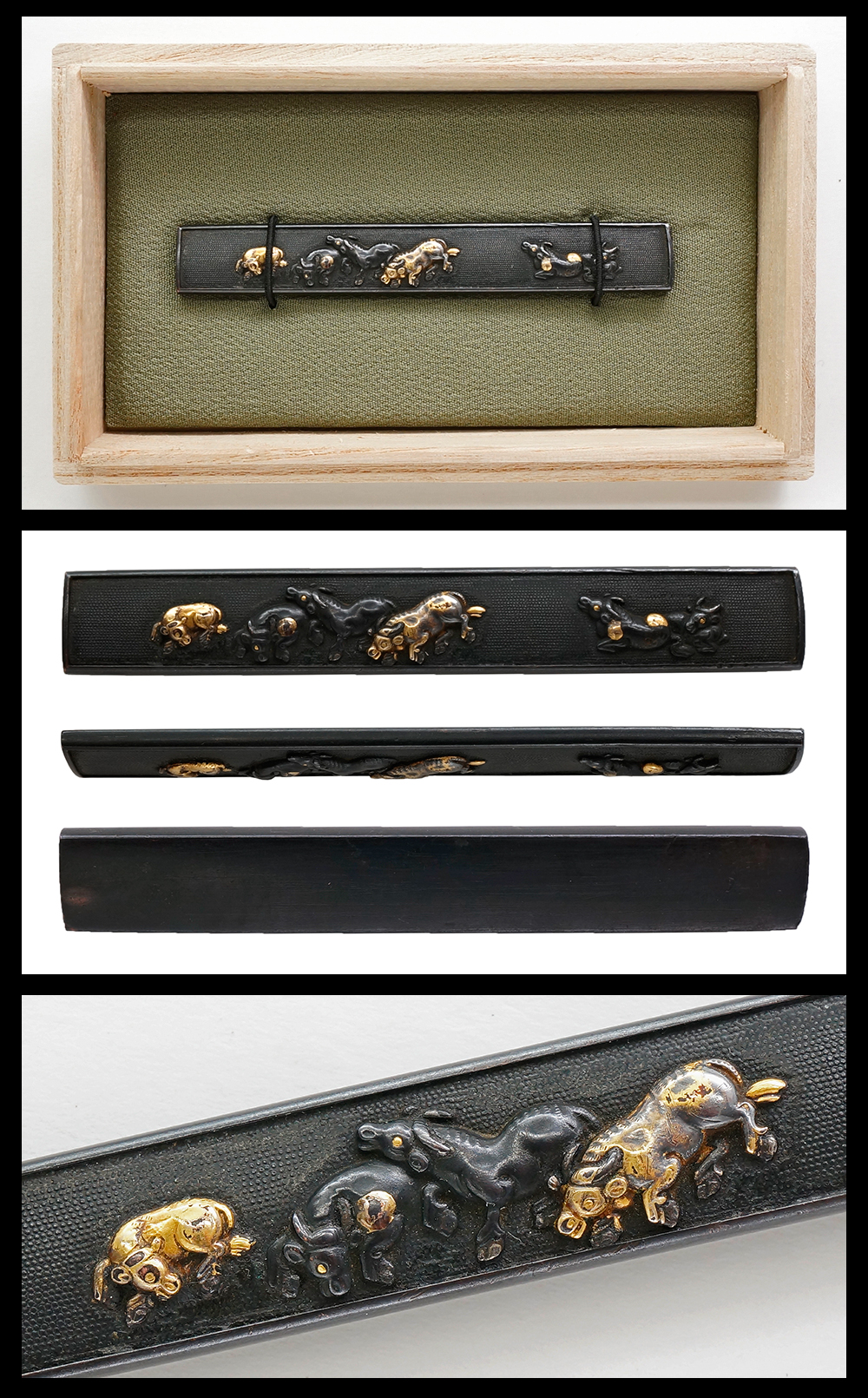 Special feature : On the Shakudo Nanako, cattles are ngraved with gold color.