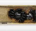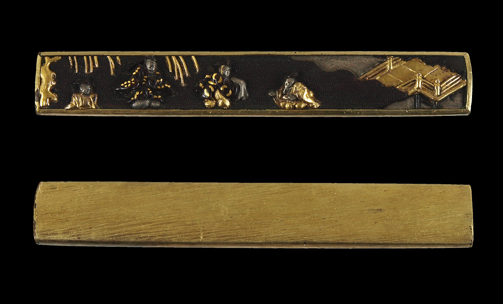 Special feature: On the Shakudo nanako plate, people and bridge are engraved with gold and silver color iroe.