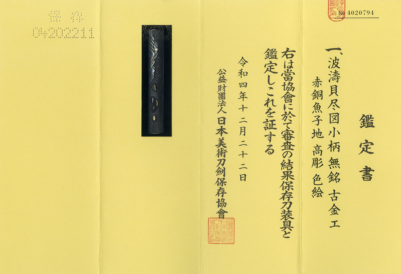 Kozuka:Mumei(judged as Kokinko)(NBTHK Hozon Paper)