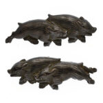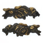 Features: shakudo menuki with a picture that appears to be Inro and a purse.
